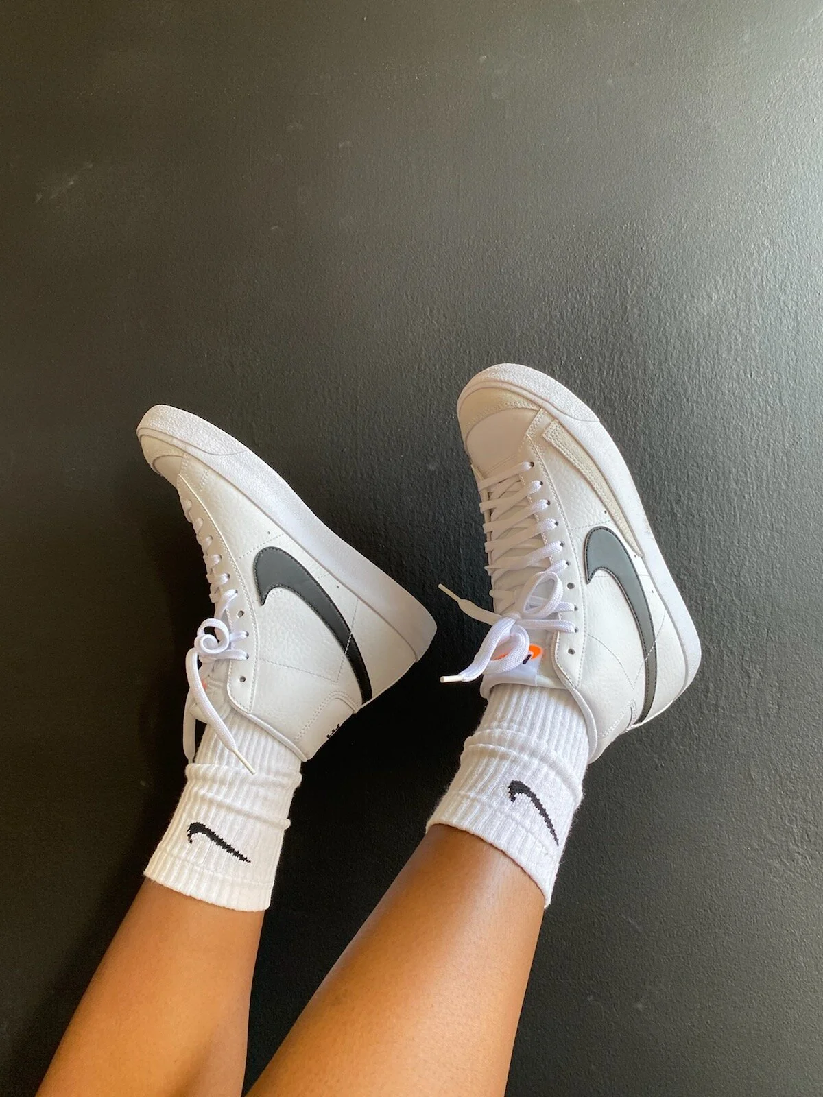 I wore a sweatsuit from Fruit of the Loom in the color “Charcoal Heather”. A faux leather trench coat from Zara. My new Nike Blazer Mid '77s, vintage Coach bag and black sunglasses.